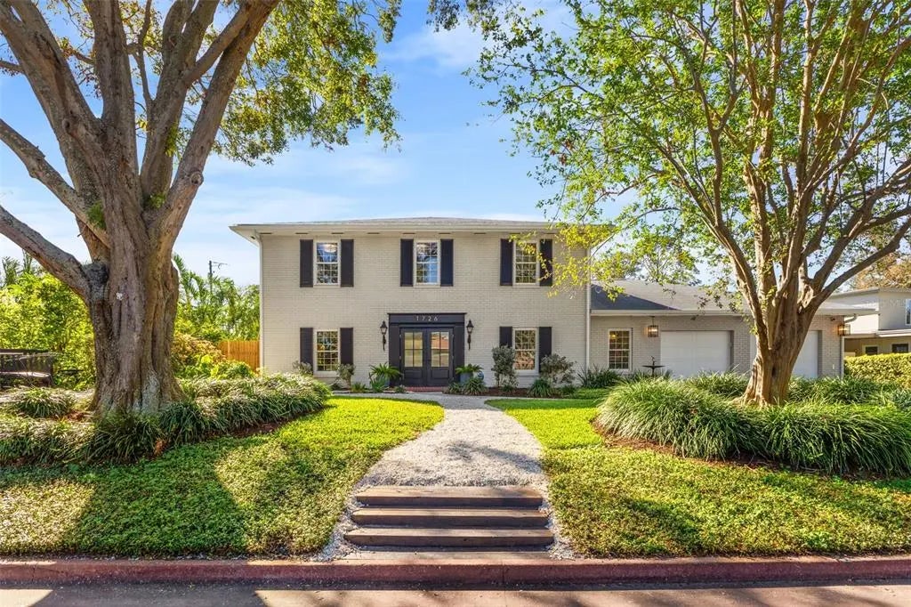 This executive pool home in the historic "Pink Streets" neighborhood of Pinellas Point is a stunning example of casual elegance combined with modern updates, This home is located in Evacuation Zone "D" and Flood Zone X-500, so no flood insurance is required and the property was NOT affected by the recent hurricanes. With five bedrooms, four full bathrooms, and two half bathrooms, this two-story residence sits on a sprawling double lot and offers over 3,600 square feet of meticulously designed living space. Upon arrival, the double-width driveway leads to a beautifully landscaped front yard with a charming outdoor seating area under the canopy of mature oak trees. Inside, the grand foyer is bathed in sunlight through new Therma-Tru French entry doors with fluted architectural glass, and a staircase featuring crisp white risers and black-stained treads offers a graphic touch. The formal living and dining spaces on the first floor showcase high ceilings, warm honey-colored hardwood floors, and thoughtful architectural details such as built-ins and wainscoting. These rooms enjoy views of the newly updated pool area by Oasis pools, which features indestructible, 3/4" thick, Bellissimo porcelain pavers. The first floor also includes a versatile mother-in-law suite with an updated private bathroom and walk-in shower. Guests will appreciate the unique powder room tucked beneath the staircase, featuring a corner sink that adds a whimsical touch. The heart of the home is the spacious kitchen, complete with granite countertops, oversized subway tile backsplash, stainless steel appliances, and charming red brick floors. A breakfast nook with banquette seating overlooks the pool through a bay window. Adjacent to the kitchen, a large walk-in pantry with built-in shelving and a functional laundry room with a half bath and laundry chute add to the home's practicality. The family room at the rear of the home is a warm, mid-century modern space with knotty pine paneling, red brick floors, a built-in bar, wood burning fireplace and multiple sets of French doors leading to the expansive screened lanai. Measuring 42’ x 12’, the lanai overlooks the lushly landscaped backyard and pool area, making it perfect for outdoor dining and entertaining. Upstairs, the layout includes a bonus space ideal for an office or homework room that could also be converted to a laundry room or expanded master closet. Two secondary bedrooms at the front of the home share a beautifully updated hall bathroom with dual sinks, a water closet, and a tub/shower combination. The third bedroom, overlooking the pool, features its own renovated en suite bathroom with a glass-enclosed walk-in shower. The primary suite is a true retreat, with a dressing area featuring two closets outfitted with Elfa closets systems for optimal organization. The en suite bathroom is equally luxurious, offering dual sinks with quartz countertops and a separate wet area with a walk-in shower with marble floors. Storage is never an issue in this home, with walk-in closets with built-in shelving in the bedrooms, an upstairs hallway linen closet, a suitcase closet under the stairs, and even a shoe closet in the family room with built-in cubbies for 64 pairs of shoes! The storage continues outside with a 12'x8' Wally Watt shed and a spacious 2-car garage with custom shelving built along the entire length of one wall. Situated in the historic and charming "Pink Streets" enclave.