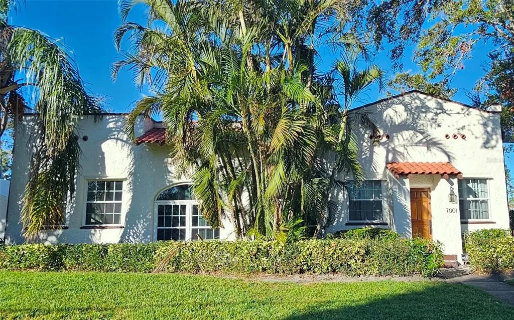 ?This historic Spanish Mediterranean gem was built in 1925. "Newton House" was the second house built in the coveted "Pink Streets" of Pinellas Point, located next to the Indian mound of the Indigenous Indians believed to have blessed this area to ward off storms, and it worked! This rare location is in X flood zone and experienced no flooding during the last two storms. The single-car garage is converted into a new ADU with a new bathroom and mini-split cooling system. Sitting almost one-half acre, the Cuban resort-style bungalow has three bedrooms and three bathrooms with 2433 square feet of living space. Commonly found in the Mission architecture of the 20s, the home was built around an enclosed courtyard to catch the constant breezes of Pinellas Point. The courtyard has been converted into a sun-filled atrium that still serves as the heart of the home. Extraordinary original cement Cuban tile floors are found in the living room, dining room, and office/guest bedroom to cool the interior. The original wood floors in the bedrooms and an original, individually laid marble tile kitchen floor show the details and craftsmanship of this home. Architectural details in the authentic design include rough plastered interior walls with curved corners, coved and beamed 12' ceilings, metal detailing, arches, and a stucco exterior. These historic features have been lovingly and accurately restored while bringing the home up to date with new electrical wiring, electric panel, plumbing, air conditioning, water heater, pool pump and pool resurfacing, kitchen and bathroom appliances, and fixtures. The living room features a double-sided fireplace with stone from Stone Mountain, GA, on the living room side and a traditional Mediterranean shape on the atrium side. Beautiful arches separate the dining room from the atrium with an open, airy feel. The bungalow boasts two en-suite bedrooms. A large master bedroom features two walk-in closets and a master bath with double sinks, a large shower, and an original private toilet stall. A second en-suite bedroom with a bathroom accesses the pool deck to double as a pool bath. The third bedroom smoothly transitions as an office or guest accommodation. The completely remodeled kitchen allows easy entertaining as with the rest of the house. The kitchen features open shelving, soapstone counters, and stainless steel appliances with a natural gas cooktop. Entering the private backyard, one can't miss the large, authentically crafted tiki hut, which can double as an outdoor entertainment and carport. This also survived the storms with little or no damage. It is a one-of-a-kind tropical oasis with a large, 11-foot-deep swimming pool and a resurfaced shuffleboard court. A large, circular driveway allows plenty of room for guest parking.