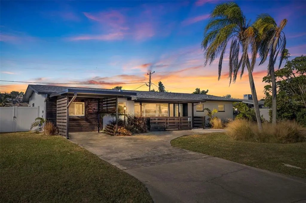 Welcome to Maximo Moorings—a FULLY FURNISHED coastal retreat in the heart of it all! This beautifully renovated mid-century home that had NO FLOOD DAMAGE DURING HURRICANES HELENE & MILTON is tucked away in the sought-after Marina District, offering a serene escape just minutes from St. Pete Beach, Tierra Verde, and Fort De Soto. Perfect for those seeking a second home or a high-demand investment property, this turnkey opportunity is ready for you to move right in—or start earning rental income immediately. This turnkey home has been thoughtfully updated with a newer roof (2023) and a newer carport, ensuring peace of mind for years to come. The home’s modern coastal charm is evident from the moment you arrive, with its inviting front porch and custom impact windows that enhance both curb appeal and safety. Inside, the open-concept layout is bathed in natural light, thanks to triple-panel sliding glass doors that connect the living space to the outdoors. The fully furnished interior has been curated with both style and comfort in mind, perfectly complementing the home's coastal-boho finishes. The kitchen, designed for both beauty and function, features solid wood cabinetry and elegant finishes—ideal for home chefs and entertaining. The floor plan offers a private primary suite with an updated en suite bath, a cozy guest room with a similarly refreshed bath, and an additional bedroom to accommodate family, friends, or renters. Terrazzo floors throughout provide a timeless, low-maintenance look that ties the spaces together. Additional updates include an indoor laundry room, a mudroom with built-in bench seating and storage, and a large pantry perfect for bulk storage. Maximo Moorings places you near everything you could want, from the recently renovated Maximo Marina with its popular Tiki Docks restaurant to the Gulf beaches, Eckerd College, the Pinellas Trail, and vibrant downtown St. Pete. With easy access to I-275, Tampa is just 20 minutes away, making this home ideal for weekend getaways or as a centrally located rental property. Fully furnished and move-in ready, this home offers a rare chance to own a slice of Florida paradise without any extra hassle. Schedule your private showing today and start living the Florida dream!