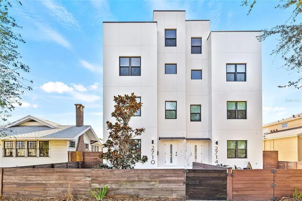 Move in ready townhome located in the Grand Central District of St. Petersburg, just one block to Central Avenue. This modern tri-level townhome features 3 bedrooms, 3 ensuite bathrooms, 1 half bathroom and two large decks. The home has a climate controlled 3 car garage and offers a home charging station to accommodate electric vehicles. The main floor of the townhome includes open space living with 9 ft ceilings and a second story 400 sq. ft. deck. The kitchen offers natural gas, an open concept with Woodland Cabinetry, natural stone countertops, a butcher block island, and a beverage nook with wine cooler. The mater suite is complete with his and her closets and a large bathroom featuring a double vanity and beautiful tile. Enjoy skyline views of downtown St. Petersburg from this townhome's the 3rd level 210 sq. ft. rooftop observation deck. This home also features Hurricane Impact Windows and Garage Door. With single-family zoning with a variance from the City of St. Petersburg, buyers can enjoy the benefits of owning a home with no HOA or dues.