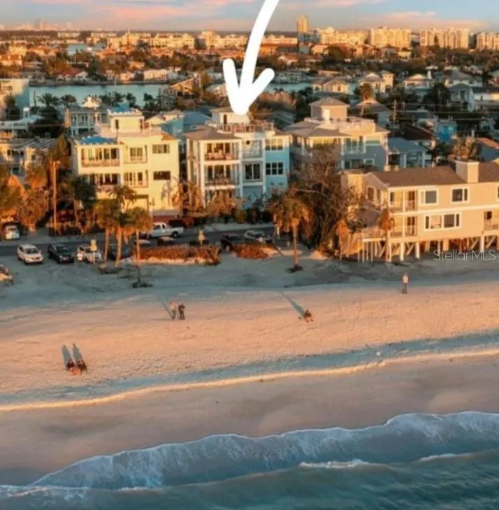 Step into unparalleled luxury with this 2020-built Coastal Modern beachfront home steps to the pristine sands of Sunset Beach, offering direct beach access and breathtaking views. Designed with superior craftsmanship and attention to detail, this residence is the epitome of elegance, comfort, and resilience. Built with all-block construction, breakaway walls, flood vents, and impact PGT sliders and doors, this home ensures durability and peace of mind. Remarkably, it has experienced NO FLOOD DAMAGE IN LIVING AREAS and has made no insurance claims since its construction. Enjoy over 4600 sq. ft under roof, 2745 sq. ft. living area, plus an additional 432 sq. ft of roof top, and a rare, heated pool and jetted spa, complete with a Shellac deck, recently acid washed, and equipped with a new pool heater and pump. The outdoor oasis is enhanced with an outdoor shower and outdoor TV, perfect for entertaining or unwinding after a day at the beach. The spacious layout includes 3 bedrooms each furnished with King sized bedroom furniture with a possible 4th bedroom, office, or den, and a private elevator to the 3rd floor. The spacious two-car garage and extended paved driveway provide ample parking, accommodating up to five vehicles for guests. A private rooftop terrace provides the ultimate retreat with year-round sunsets and stunning views of Downtown St. Pete. Inside, the home boasts thoughtful design elements, including 10-ft ceilings, 8’ interior doors, crown molding, and oversized baseboards throughout the main living spaces. The chef’s kitchen is a standout feature, equipped with a 60” oversized built-in refrigerator with glass door, 48” natural gas gourmet range, commercial-grade range vent with fresh air intake valve, dual-zone wine cooler, convection microwave, marble countertops, built-in shelves, and stack cabinets with lighted glass. A tankless hot water heater with a recirculating loop ensures on-demand hot water throughout the home, adding convenience and energy efficiency. The master suite is a private haven, offering its own private balcony overlooking the beach, a spa-like bathroom with dual sinks, a walk-in shower with double shower heads, and elegant marble finishes. For convenience, a double front-load washer and dryer are centrally located near the bedrooms. Modern electrical updates include energy-efficient LED recessed lighting, outdoor holiday lights, and other enhancements throughout the home. Situated in the heart of beachfront restaurants and entertainment, this home perfectly blends convenience and tranquility. The private fenced yard offers additional space for gatherings or enjoying your secluded paradise with a gate taking you directly to the public beach access. This home delivers the ultimate in beachfront luxury, resilience, and lifestyle. Whether you’re seeking a full-time residence, a vacation retreat, or an investment property, this Sunset Beach gem is a rare find. Schedule your private tour today to experience coastal living at its finest!