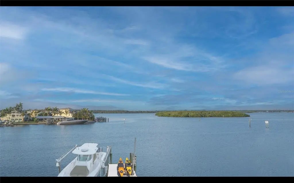 WIDE OPEN WATER VIEWS! This home sits high on a raised lot with all living space on the second and third levels. Hurricane rated windows and doors. Move-in ready! Little impact from recent storms. This is the only open-water home with an elevator for less than $3.6m in all of Pinellas County. Countless miles of sea and sky create an ever-changing masterpiece of color and movement. From your private balconies, watch bottlenose dolphins raise their young, ospreys soar overhead, and manatees glide through the water—nature’s show is endless. Boca Vista's three stories were designed right, with bedrooms on the second floor and main living areas on the third, where the breathtaking views stretch to the horizon. Ascend via elevator or custom oak stairs to an open floorplan framed by walls of glass that fill the space with natural light. Savor the luxury of 10-ft ceilings, two covered balconies, and two new Trane heat pump central A/C units (with 10-year transferable warranties). The central vacuum system, bedroom-level laundry room and imported Italian porcelain flooring make housekeeping a breeze. The first floor consists of a two-car garage with level-2 EV charger, two generous storage areas, large rec room and dedicated workshop -- an additional 500 feet of air-conditioned space not included in square footage. The waterfront features a robust commercial-grade seawall, nearly new 40'x10' dock with care-free vinyl planking, a 12,000-lb boat lift and1,500-lb personal watercraft lift, all with professionally wrapped pilings. Metal roof, Belgium block driveway and fiber cement siding contribute to near maintenance-free living. Boca Vista's corner lot has water on two sides which greatly enhances your view and privacy. Northern exposure allows you to enjoy your view all day long, never closing blinds against the brilliant Florida sun. No-wake zone means serenity from speeding boats and pounding waves. The beautiful sands of Madeira Beach and the Gulf are only minutes away by foot or boat. Shopping, restaurants, entertainment and watersports are steps away in John's Pass Village, or a short drive to trendy downtown St Pete. Make Boca Vista your home and live your dream! All nature pics taken directly behind home.