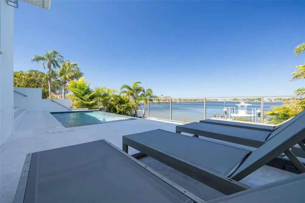 Exquisite Waterfront Oasis on Smacks Bayou! Indulge in the pinnacle of Florida waterfront living with this breathtaking estate, offering expansive, unobstructed views of Smacks Bayou. Built in 2022 with elevated construction, this home provides peace of mind, having remained untouched by storms while embracing the beauty of coastal living. Spanning approximately 3,094 square feet, this architectural masterpiece boasts 3 spacious bedrooms, 3 full bathrooms, and 1 half bath, all meticulously designed to blend modern elegance with timeless Moroccan-inspired details. A six-car garage, equipped with five mini-splits and two car lifts, ensures ample space for your prized collection. Effortless luxury begins the moment you arrive. Park in your expansive garage and take the private elevator directly to the main level—an unparalleled convenience for groceries, packages, and daily living. The chef’s kitchen is a culinary dream, featuring top-of-the-line JennAir appliances, including a six-burner gas range, built-in refrigerator and dishwasher, and an exquisite waterfall island adorned with marble countertops. The interiors exude warmth and sophistication, with hand-selected fixtures from Anthropologie, 8-foot solid core doors, and a seamless open-concept floor plan that showcases panoramic waterfront views from the moment you enter. The primary suite is a sanctuary, complete with a spa-like bath featuring a curbless shower, Moroccan-inspired Zellige Clay Tile walls, and a luxurious soaking tub beneath a cascading rain shower head. Custom Arhaus pendant lighting adorns the bedside, while a sprawling walk-in closet with a built-in island offers space for every wardrobe essential. Each guest ensuite is a private retreat, featuring marble tile, marble countertops, and meticulous craftsmanship. The home’s seamless indoor-outdoor flow is enhanced by Origin bifold doors, allowing you to transition effortlessly to the covered terrace. Here, you’ll find a Sekas custom infinity pool, a natural gas firepit and grill, and a fully equipped outdoor kitchen with an ice maker, sink, and refrigerator—perfect for entertaining against a stunning waterfront backdrop. The newly constructed seawall and composite dock are designed for effortless boating, featuring a 10,000 lb boat lift. Immerse yourself in serene waterfront living, from watching dolphins glide through the bayou to setting sail from your private dock. Located just minutes from Downtown St. Petersburg, the Vinoy Golf Club, world-class shopping, museums, and fine dining, this residence is more than a home—it’s an invitation to an unparalleled lifestyle. Don’t miss the opportunity to own this waterfront masterpiece. Call today to experience its grandeur firsthand! **Metal Roof** Impact Windows and Doors** Whole Home Generator** Elevated Construction**