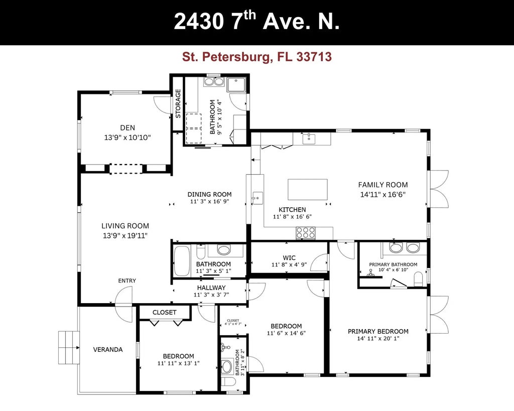 Welcome to 2430 7th Ave N, a star from BungalowFest 2022, is a beautifully reimagined bungalow in the heart of Historic Kenwood. This 2212 SF, 3 bedroom, 3 bath home with den and double living rooms sits high and dry in a non-evacuation zone (Flood Zone X) and is secured with hurricane-rated windows and doors. This 1940s bungalow is on an oversized lot (80x123) with room for an ADU and a pool. New fence being installed in the next 2 weeks! Historic Kenwood, one of St. Petersburg’s premier neighborhoods rich in architecture and walkable streets, is minutes from downtown. This exceptional home was featured in Cottages and Bungalows Magazine and designed by acclaimed local firm Bee Studios, known for blending timeless style with modern function. Nestled beneath grand oaks that attract migrating birds and framed by lush landscaping, this home offers a peaceful retreat with a tranquil pond. Thoughtfully expanded in 2019/20 with an 800 SF addition, the layout now includes a custom kitchen, family room, spacious laundry/mudroom, private primary suite, and flexible den that could serve as a 4th bedroom. Major updates include PGT hurricane-impact windows/doors, 2023 HVAC, and tankless gas water heater. Inside, the home blends vintage charm with designer sophistication. Historic details like original hardwood floors, antique brick stoop, and built-ins pair with modern conveniences like luxury appliances, recessed lighting, motorized Hunter Douglas shades, and designer fixtures/tiles. The kitchen is a chef’s dream, with Fisher & Paykel appliances including 30” fridge and 18” freezer columns with zinc panels, a 36” dual-fuel range with stainless hood, paneled double dish drawers, and Sharp microwave drawer. A bar area includes a sink, custom pullouts, and beverage fridge. Other highlights: custom cabinetry with pullout pantry, Lemans unit, deep pot drawers, spice pullout, drawer organizers, open shelving, soapstone waterfall island, and quartzite counters. Under-cabinet lighting adds functional task or ambient glow. The laundry room is both functional and beautiful, with a reclaimed barn wood folding table, overflow pantry, wall-mounted Kohler sink with dual faucets, dog wash station, and access to a side yard with original pavers. The primary suite features a walk-in with custom system and spa-like bath with mosaic and porcelain tile, curbless shower with bench, matte black Brizo fixtures, concrete counters, and built-in linen storage with hamper. The guest bath offers hand-painted tile reminiscent of bungalow porches, marble-topped vanity, wall-mounted faucet, and designer details. Outside, enjoy the original hex paver patio, lush landscaping, alley access to a detached double garage, alley parking, and fire pit—perfect for entertaining or relaxing. Living in Historic Kenwood means being part of a vibrant, creative community filled with charm and pride. As part of the Artist Enclave, residents enjoy events like BungalowFest, Sunday market, porch parties, and open studio tours. Just minutes from downtown St. Pete, the Grand Central District, art galleries, and waterfront parks, this home offers an unbeatable blend of historic beauty, designer style, and community connection.