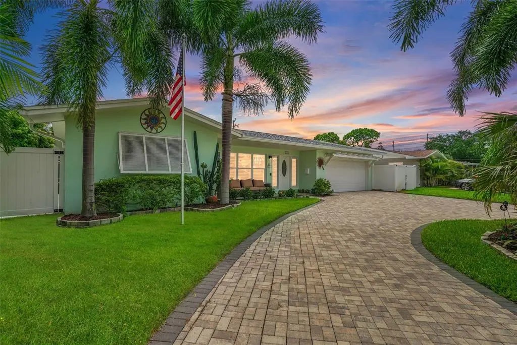 NO FLOODING- HIGH AND DRY! IMMEDIATE OCCUPANCY AVAILABLE. This exquisitely renovated 4-bedroom, 3-bathroom residence in Maximo Moorings is a true gem! Upon arrival, the charming exterior and lush tropical landscaping will captivate you. The home boasts a bright and airy open floor plan, making it ready for immediate occupancy. Elegant travertine flooring extends throughout, complemented by crown molding and plantation shutters. The kitchen, living, and dining areas are designed to flow effortlessly together. Culinary enthusiasts will appreciate the kitchen, which features warm-toned wooden cabinetry, polished granite countertops, a tiled backsplash, a breakfast bar, stainless steel appliances, gas cooking with Wi-Fi capabilities, and a cutting-edge Samsung refrigerator equipped with Alexa and Wi-Fi. This exceptional layout is perfect for entertaining, including a fourth bedroom that can serve as a mother-in-law suite. The master suite is adorned with luxury vinyl plank flooring, an extensive closet space, and a contemporary bathroom featuring custom tile work. Generously sized guest bedrooms and an updated guest bathroom are conveniently located. Begin your day in the bright Florida room that spans the back of the house, leading to two distinct outdoor entertainment areas. Sliding glass doors open to a spacious screened patio complete with a spa, gardening area, and a relaxing space under an umbrella. On the opposite side of the Florida room, a sizable covered patio includes an outdoor sink and a gas grill hookup. This home is replete with numerous enhancements: a roof installed in 2020, hurricane panels for the entire property, a new water heater from 2023, a pavered circular driveway, reclaimed water for the automatic sprinkler system, exterior paint from 2019, a triple osmosis system at the kitchen sink, and much more! The property is beautifully landscaped and fully enclosed with PVC fencing. Garden enthusiasts will appreciate the ample space, which includes an outdoor shed and a variety of fruit trees such as lychee, mango, olive, starfruit, and fig. Maximo Moorings is conveniently situated near I-275, a variety of restaurants, shops, and the recently renovated Maximo Marina, which has undergone $20 million in upgrades and now features the new restaurant, Tiki Docks. The Gulf Beaches, Eckerd College, the Pinellas Bike Trail, downtown St. Petersburg, and Tampa are all just a short drive away.